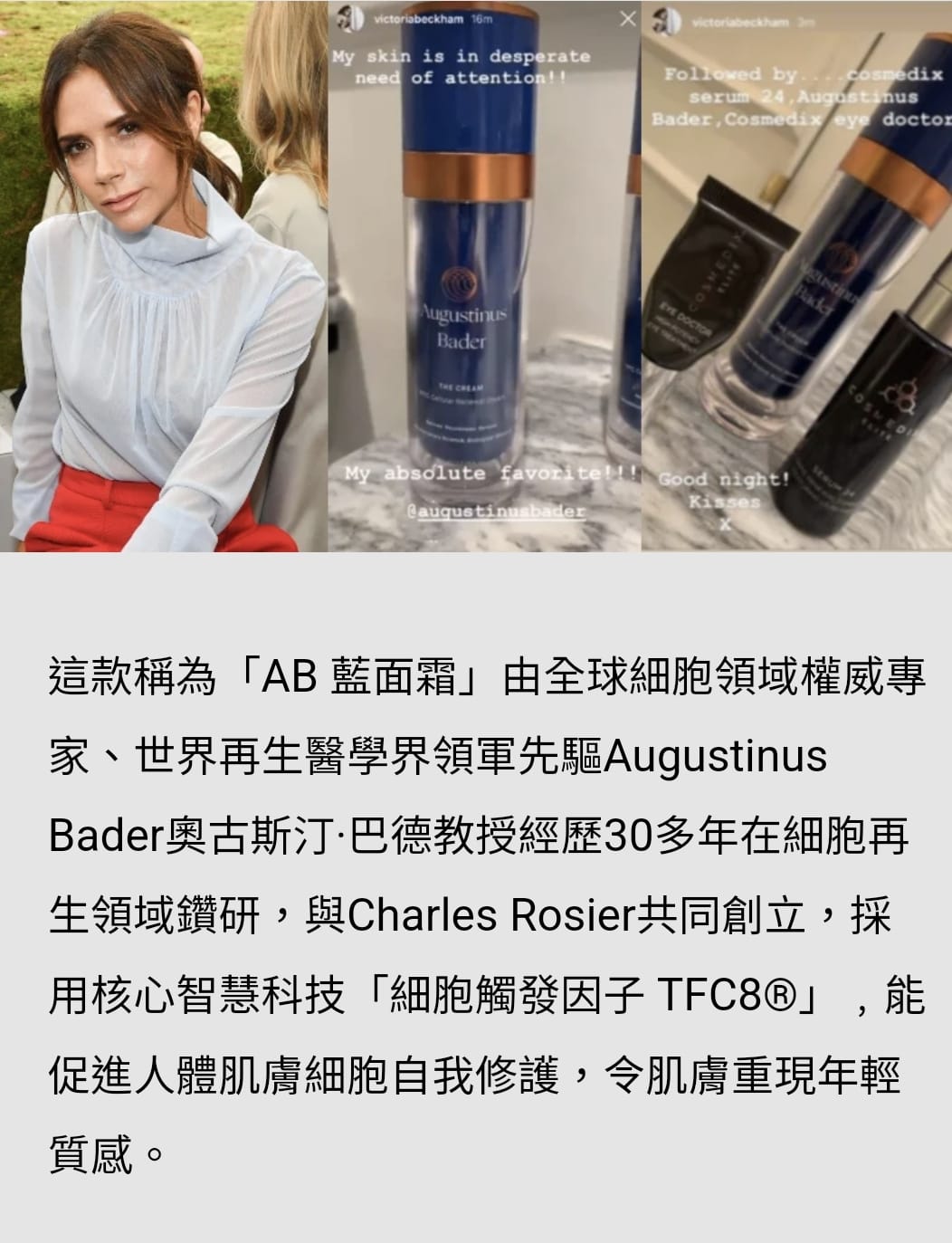 AB 藍面霜深受全球美容界權威媒體肯定,贏得眾多全球美妝大獎「最佳抗衰老面霜」,輕潤賦能生機精華乳霜的即時療效包括瞬間肌膚飽滿水潤、彈潤細膩;長期療效為皺紋、細紋、表情紋、斑點減少及皮膚提拉緊致,膚質更顯平滑飽滿