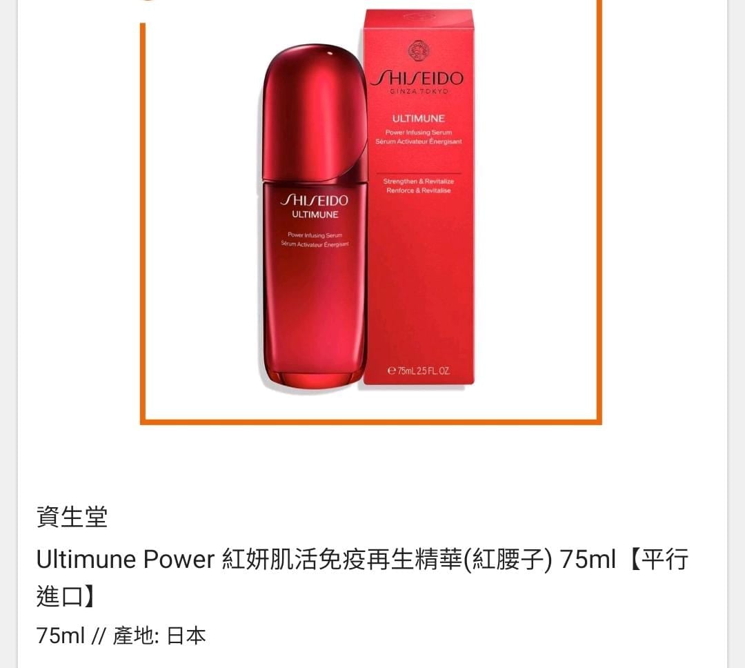 50ml 🌸 優惠價 $275/件 ✈️ 預計到貨日期:約2星期到貨 75ml 🌸 優惠價 $349/件 ✈️ 預計到貨日期:今個星期到貨 ✨✨✨✨✨✨✨✨✨✨✨✨✨✨✨✨✨✨✨ Shiseido資生堂紅腰子精華-新版四代 正裝 全球首發紅腰子4.0 第一代“T細胞抗老精華” 30年+肌膚免疫學研究再突破 資生堂聯合CBRC首次發現記憶T細胞能精準識別並消滅老化細胞! APM 50 75 / KMN 75