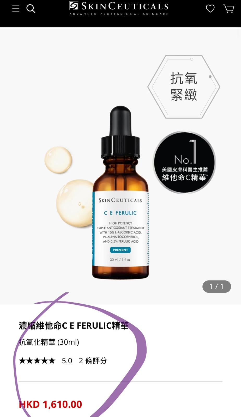 Skinceuticals 濃縮維他命C E FERULIC精華抗氧化精華 15ml