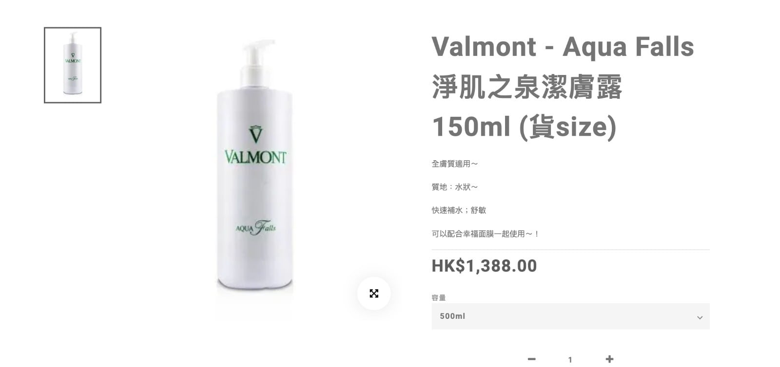 Valmont 🤍 淨肌之泉潔膚露 Aqua Falls 院裝 500ml 😱客裝價$760/150ml😱